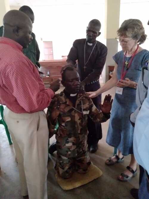Monday, and by 9am only 5 SSPDF had arrived. We were expecting 50 but when it was clear no more were coming, we adjusted the programme and started the teaching. We received a message saying these were Gideon's mighty warriors and believed this was so. Day two and 3 more joined us then on day three one young soldier came. These were the mighty men of God, hungry for His word and healing power and it was a joy to spend precious time with them. There were wonderful testimonies, here is just a taste: